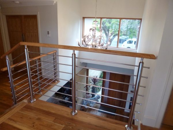 Residence Indoor Staircase Solid Rod Railing Use Wood Handrail