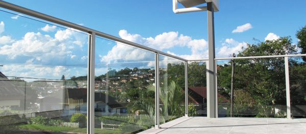 Outdoor Square Tube Baluster Glass Railing With Stainless Steel Handrail