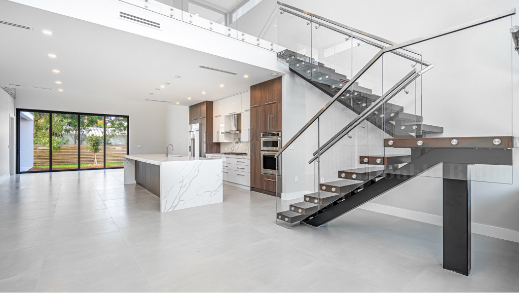 It is a type of stairway that rises in one straight line from one level to another. It is typically the most common type of staircase found in homes and buildings, and is characterized by its simple and straightforward design.